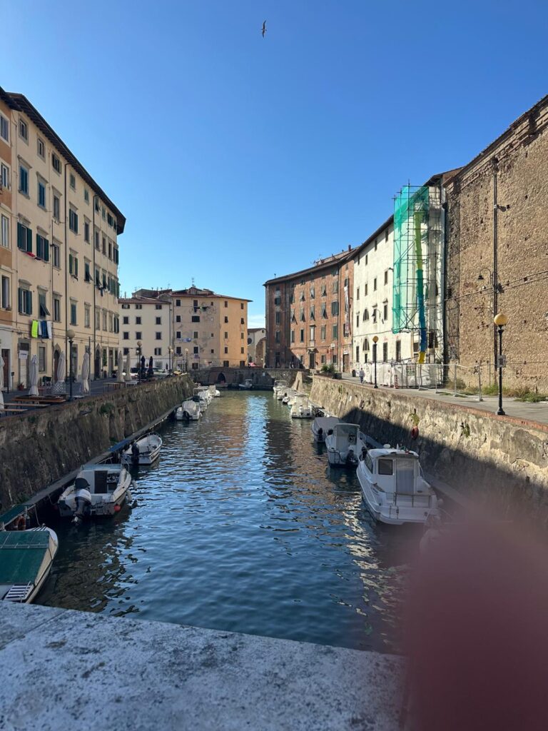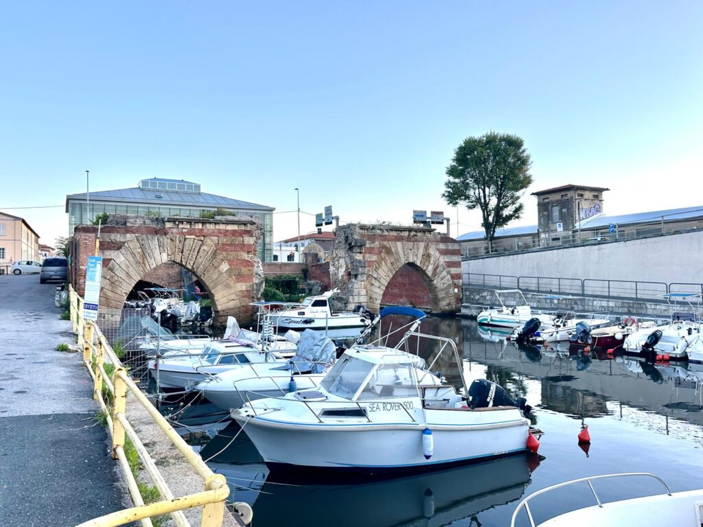Schon bald wissen wir, was sie gemeint hat: der Radweg endet nach 200m abrupt. Übrig bleibt die Strada Statale, die genauso breit ist, wie 2 LKWs. Gut, dass heute Sonntag ist, denn da fahren die riesigen Tanklaster nicht, die die hier aufgefädelten Raffinerien ansteuern, nicht. Livorno ist einer der größten Ölhäfen Europas. (Man riecht es auch teilweise.) Aber vor allem führt unser Weg vom Campingplatz 15 Minuten entlang des riesigen Industriegebiets. Schön schirch quasi. Belohnt werden allerdings wir mit dem Viertel Venezia Nuova. Einem der netteren Stadtteile Livornos. Viele Brücken, viele Kanäle, eine alte Festung, die allerdings die neuere ist, wie sich andernorts herausstellt.