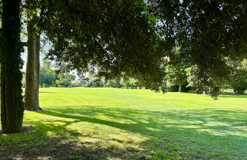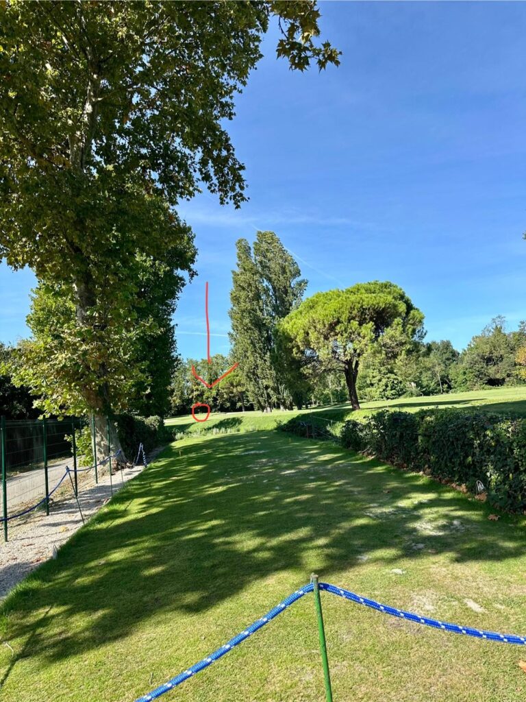 Der Golfplatz ist ein beeindruckender Parklandkurs. Mit ganz vielen, uralten Bäumen, darunter einer wirklich riesigen, über 200 Jahre alten, Platane. Das finden sogar die ökologisch eher zurückhaltenden Italiener schützenswert: Wer den Baum beschädigt, muss mit bis zu 10.000 Euro Strafe rechnen!