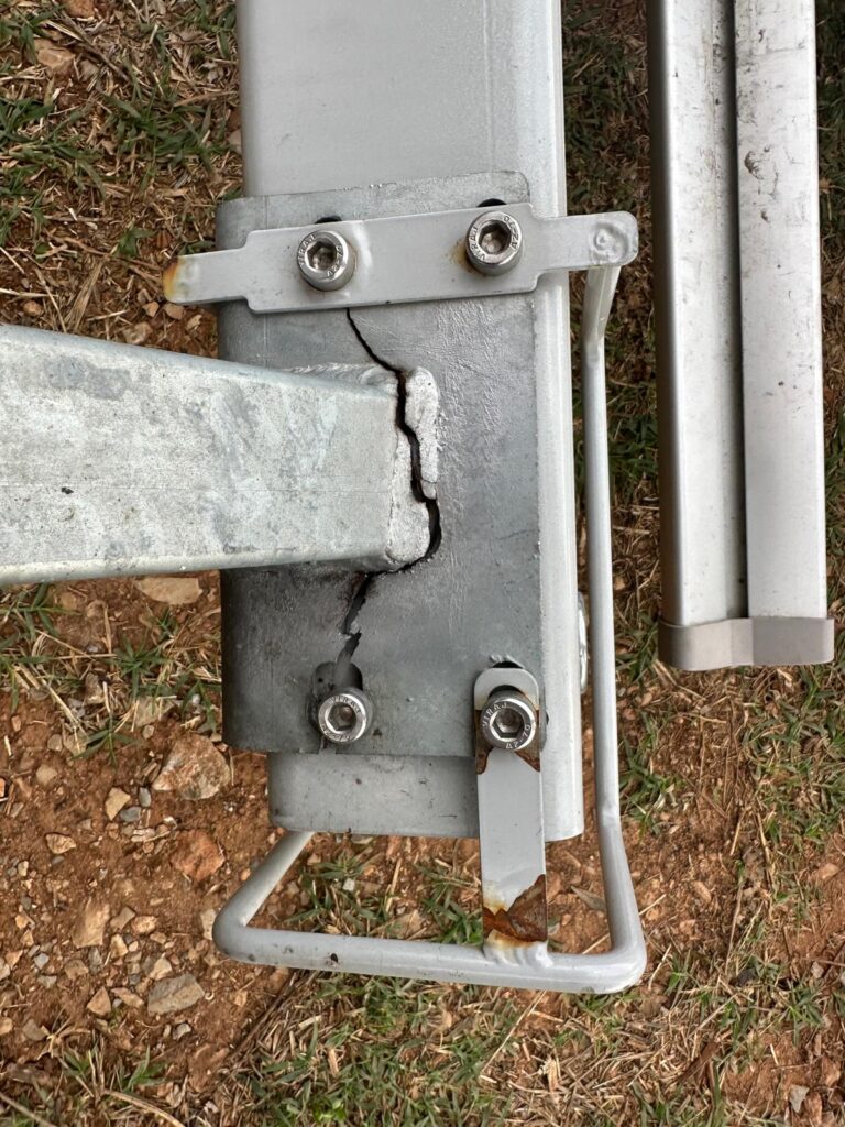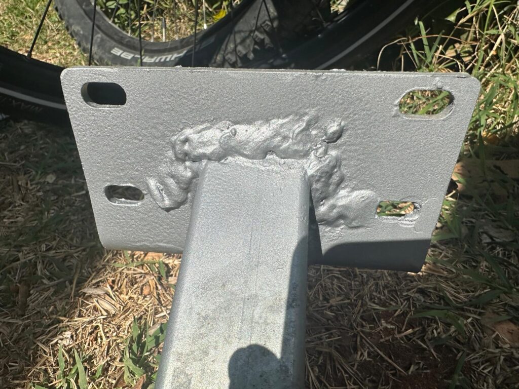 Zu allererst: Es ist nix passiert! Weder uns, noch anderen (eventuell nachfolgenden Autos oder gar Motorradfahrern 😱) und den Rädern auch nicht. Glücklicherweise hat der Mann am Campingplatz den Defekt rechtzeitig erkannt. Natürlich an einem Sonntag… Heute Montag haben wir das Teil dem Campingplatzbetreiber übergeben, der wen kennt, der schweißen kann. Hoffentlich wirklich…