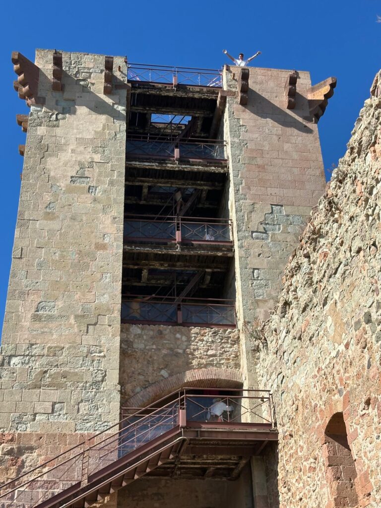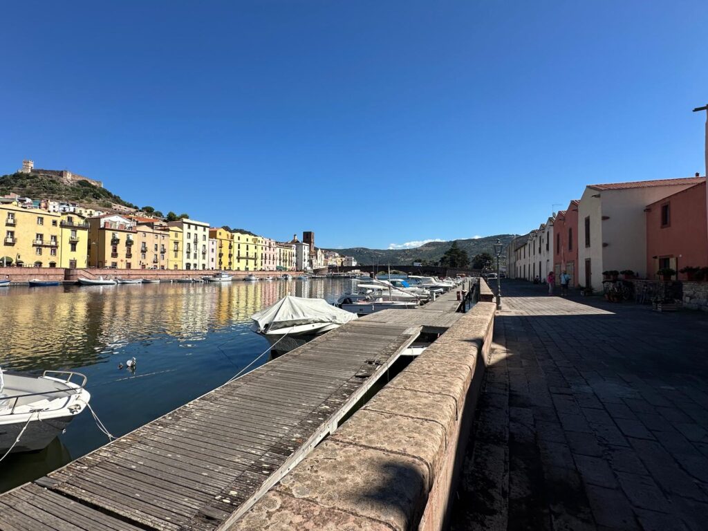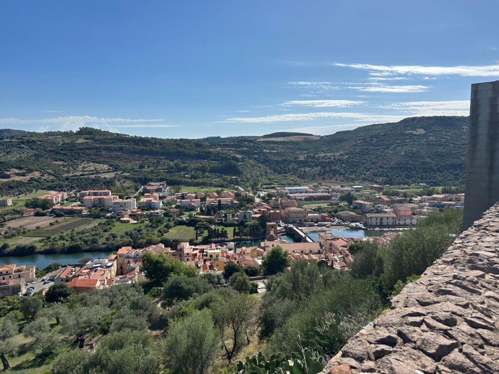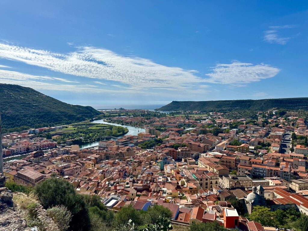 Bosa ist ein kleines Städtchen ganz im Westen Sardiniens an der Mündung des Flusses Temo. Das Besondere an Bosa sind die bunten Häuschen, die sich an die Bergflanke anschmiegen. Oben thront das Kastell Malaspina, das eine fantastische Aussicht auf die Umgebung bietet. Es lohnt sich also durchaus, die gefühlt 748.656 Stiegen zu erklimmen. Oben zahlt man dann gerne 10 Euro für einen Audioguide, der sicher gehen tät, wenn das Internet ginge… Aber egal, die Optik entschädigt allemal (und die Sporteinheit ist auch gleich inkludiert)!