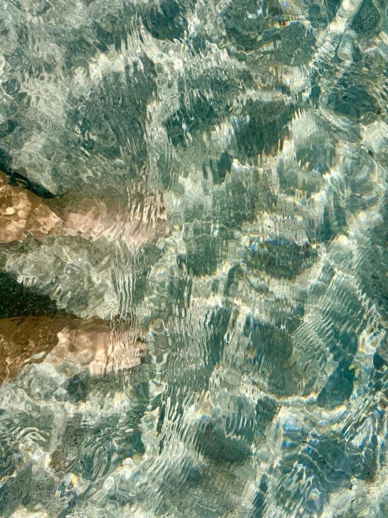 Wie auch immer, wir gingen halt zu den wunderschönen Buchten, mindestens 6 verschiedene (!). Ich machte dort am Morgen Yoga (und bemerkte erst nach einer Weile, dass direkt hinter mir das Restaurant war, wo auch Frühstück serviert wurde… Naja, hatten die was zum Schauen…) Wir waren dort erstmals drin in diesem unglaublich durchsichtigem Wasser. Es hatte sicher noch 23-24 Grad. Es war herrlich!
